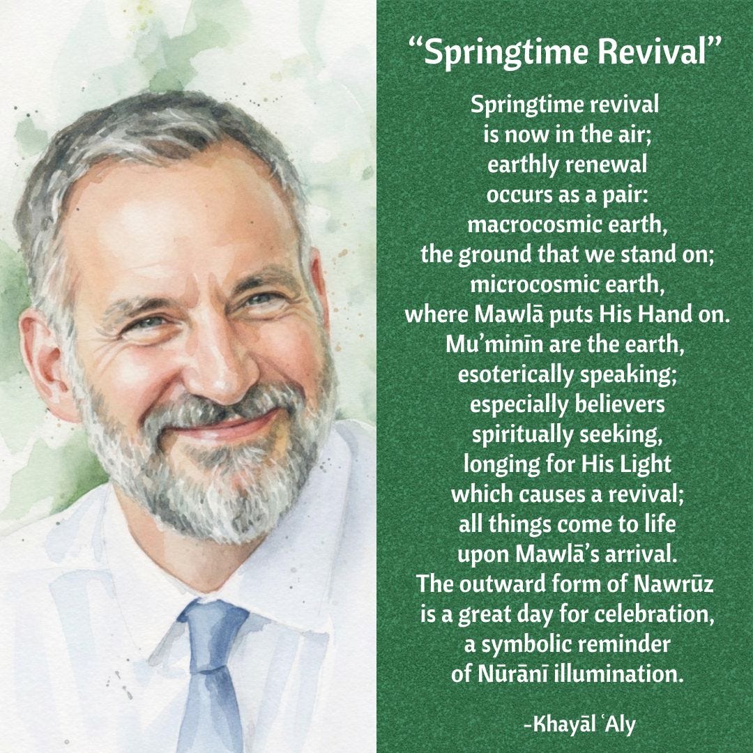 Through Ismaili teachings, the discussion highlights the Manifest Imam as the “Spiritual Sun” whose light brings true inner spring. Drawing on Qur’anic themes, ginans, poetry, and ta’wil, it presents Nawruz as a symbol of resurrection, transformation, and spiritual rebirth.